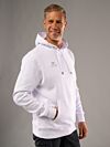 Drawcord hood with lining. A large kangaroo pocket is applied on the front.