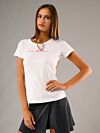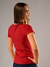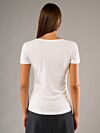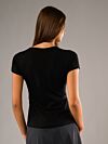 Il modello è legermente sciancrato con cuciture laterali. Il girocollo è sottile, realizzato nello stesso materiale e leggermente elasticizzato.